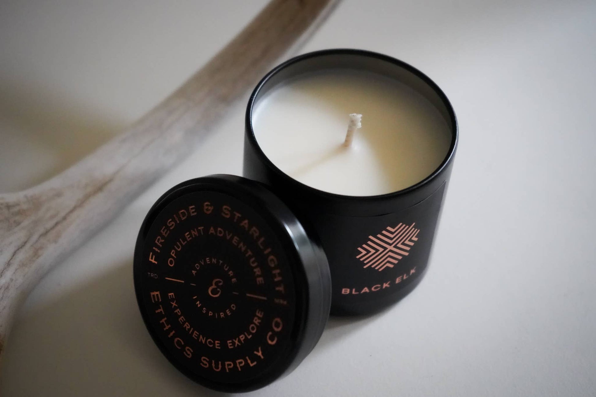 Illuminate your space with our Black Elk Peak Travel Candle, a tribute to the sacred Pahá Sápa (Black Hills) of South Dakota, cherished by the Lakota people. Inspired by the tranquil wilderness under a canopy of stars, this candle evokes the serene beauty of the night sky, where moonlight dances upon the landscape. As you light this candle, let the enchanting scents of wild sarsaparilla and clove currant blend harmoniously with the earthy notes of ponderosa pine and vetiver, transporting you to a tranquil night on Black Elk Peak. This candle invites you to savor a peaceful journey through nature, where the power of the mountains meets the tranquility of the stars above.