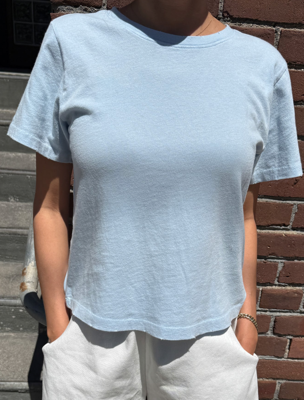 Meet the Darling Tee — It strikes the ideal balance between The Little Boy Tee's fit and the Vintage Boy Tee's worn-in charm. Featuring a relaxed boxy silhouette that hits the perfect waist length, it offers gently distressed details and a 90's fade for a true vintage allure. Crafted from locally sourced cotton, this tee combines a light, airy feel with a beautifully structured yet soft touch, giving you the vintage feel you long for.