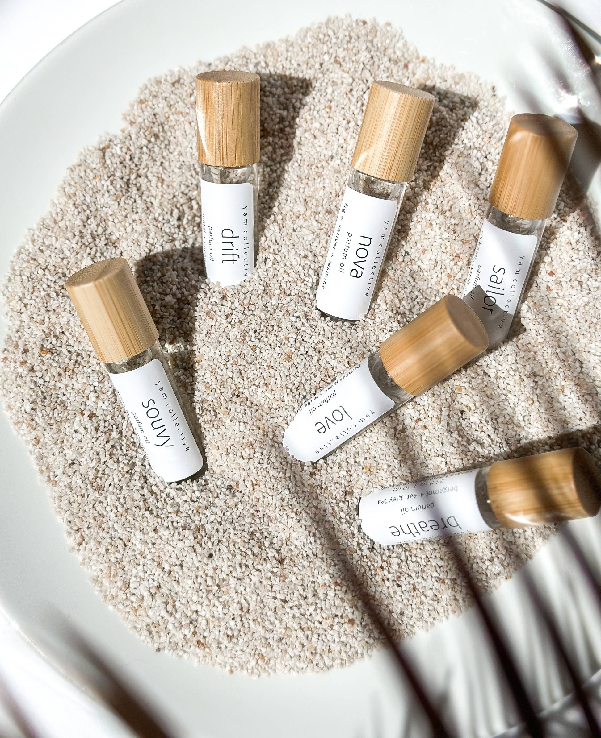 These roll on parfum oil are made with organic coconut oil & paraben/phthalate-free fragrance & essential oil blends.
